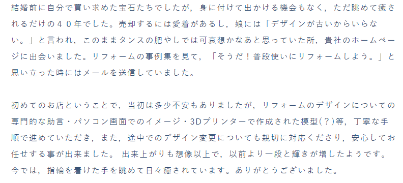 『デザインが古いからいらないと言われた指輪、リフォームして想像以上の出来上がりになりました』