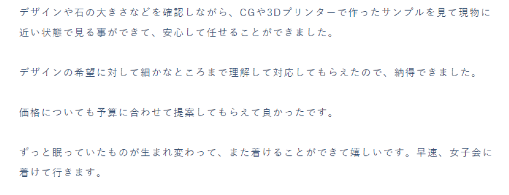 『ずっと眠っていたものが生まれ変わって、また着けることができて嬉しいです』